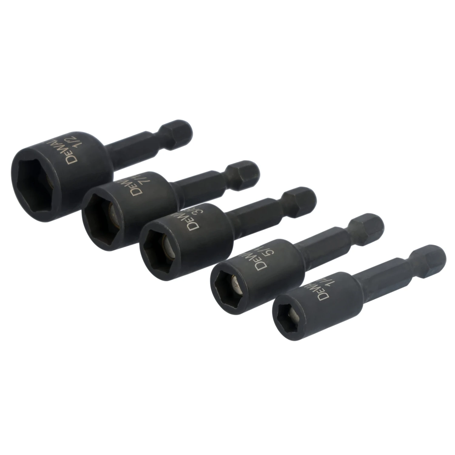 5-pc set – Includes 1/4″, 5/16″, 3/8″, 7/16″, and 1/2″ nut drivers