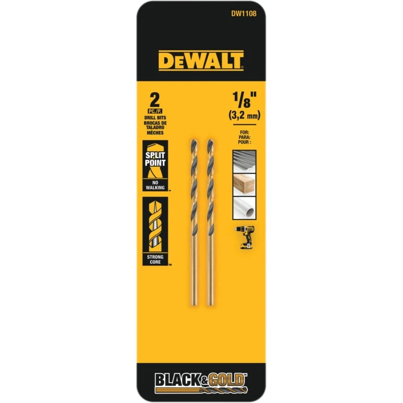 DEWALT 2 -Piece 1/8-in X 2-3/4-in Black And Gold Coated HSS Jobber Length Twist Drill Bit