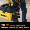 Extra long, 20-ft power cord with cord wrap helps reach almost any cleanup need