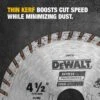 Thinner kerf to increase speed of cut while minimizing dust