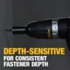 Depth-sensitive “set and forget” nosepiece for consistent fastener depth