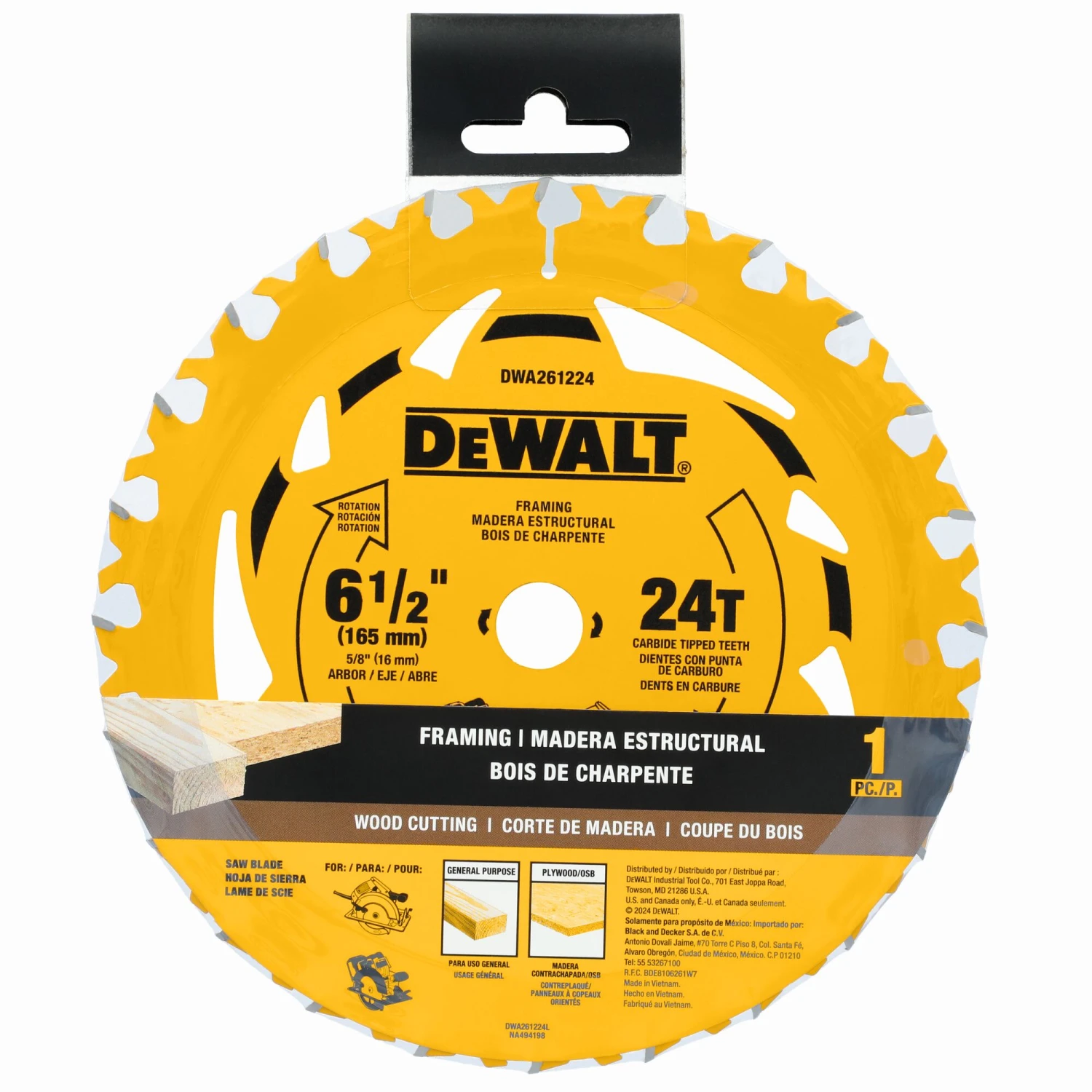 DEWALT 6-1/2-in 24 -Tooth Rough Finish Tungsten Carbide-tipped Steel Circular Saw Blade Individual