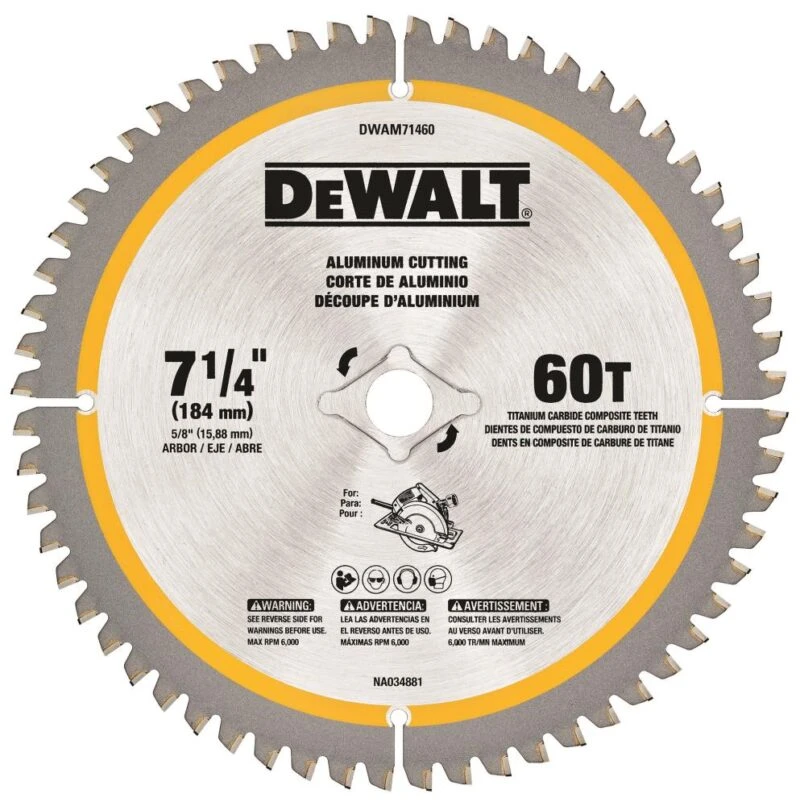 DEWALT 7-1/4-in 60 -Tooth Tungsten Carbide-tipped Steel Circular Saw Blade Individual