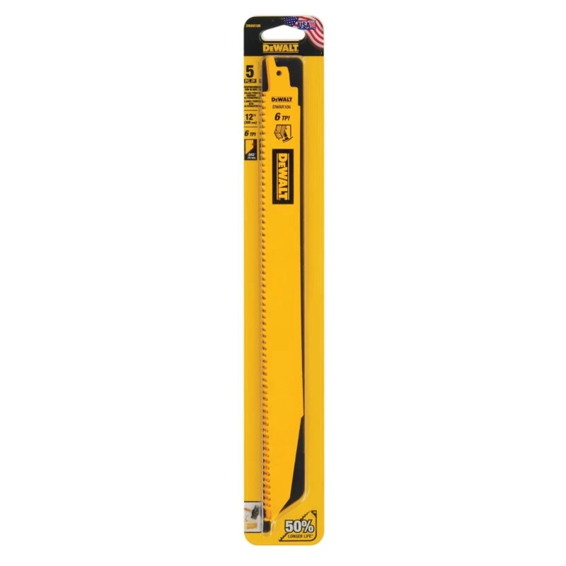 Includes: (5) 12-in 6TPI reciprocating saw blades