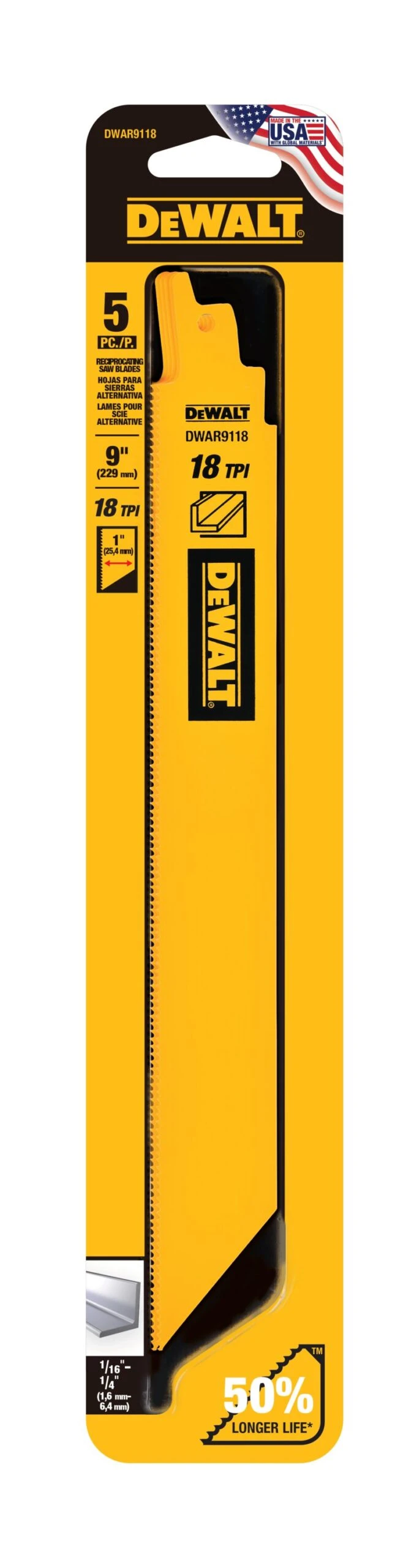 Includes: (5) 9-in 18TPI reciprocating saw blades