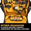 Optimize organization- organize tools with 43 pockets, including a separate compartment for your drill and batteries