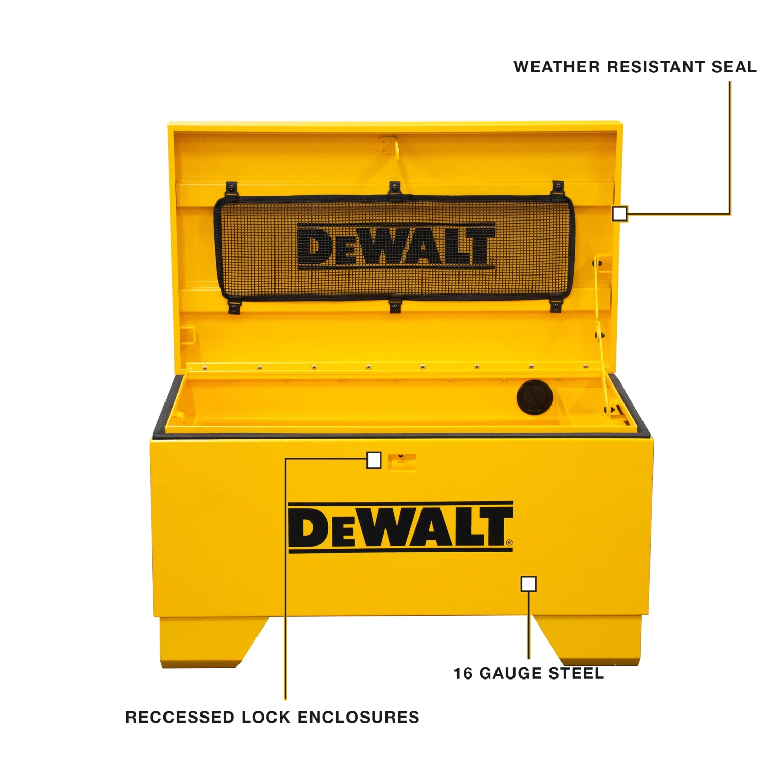 36-in DeWalt Jobsite Box in a bold yellow color is durable and ready to handle the harsh conditions of the construction site