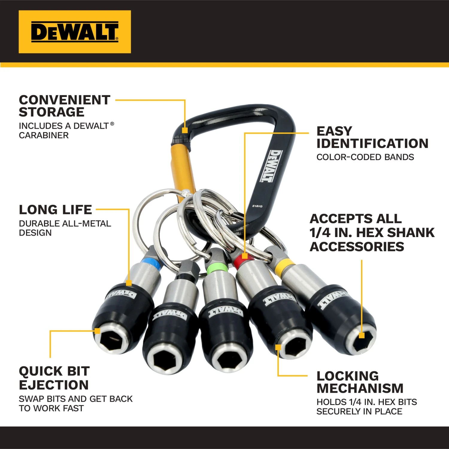 Convenient Storage – Includes a DEWALT carabiner for convenient storage on your tool belt