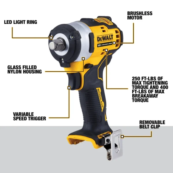 DEWALT XTREME 12-volt Max Variable Speed Brushless 1/2-in Drive Cordless Impact Wrench (Battery Not Included And Charger Not Included)