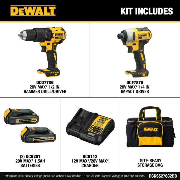 DEWALT 20-volt Max 2 -Tool Brushless Power Tool Combo Kit With Soft Case ( 2 -Batteries Included And Charger Included )