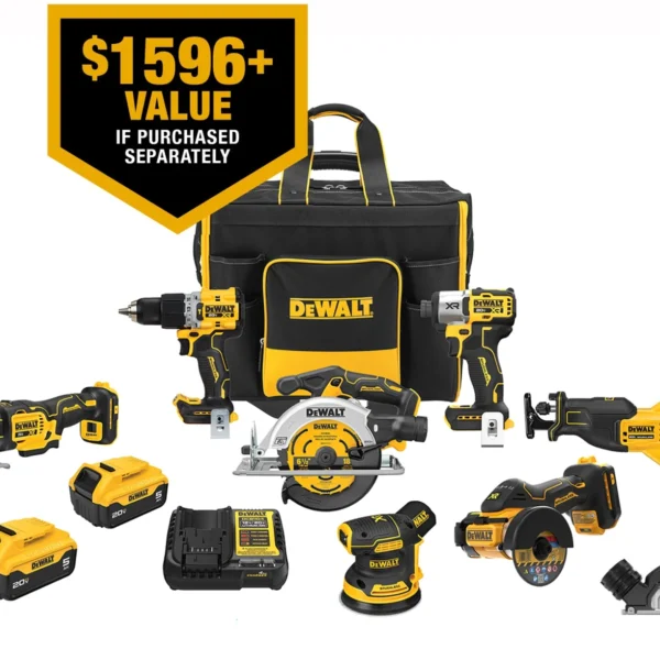 DEWALT 20-volt Max 7-Tool Brushless Power Tool Combo Kit With Soft Case (2-Batteries Included And Charger Included)