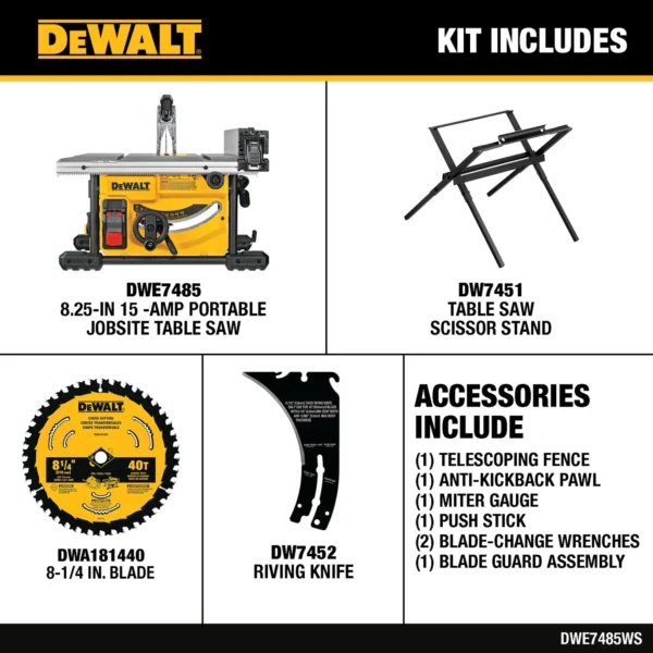 DEWALT 8.25-in 15 -Amp Portable Jobsite Table Saw With Folding Stand